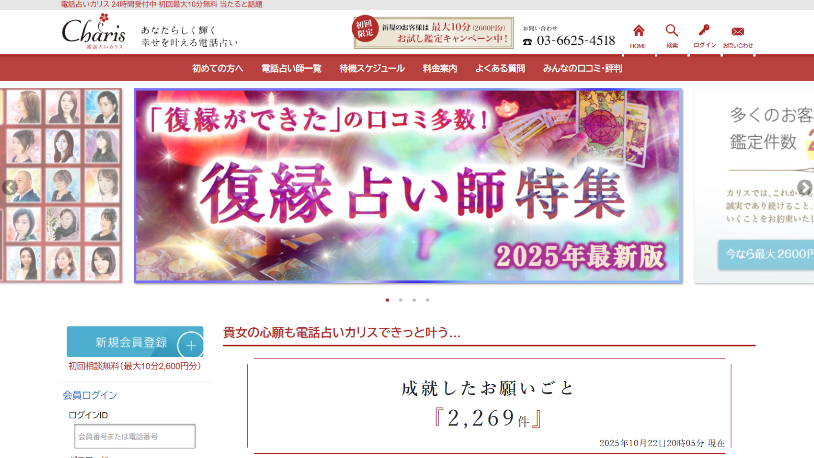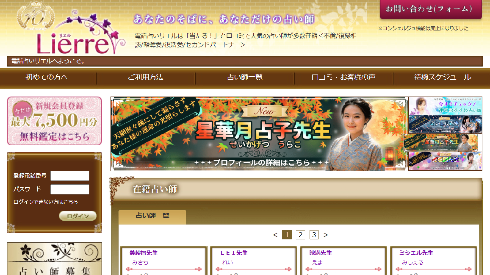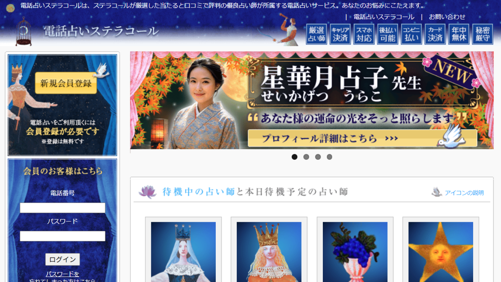 雑誌やTVで活躍する有名占い師が多数在籍!日本最大級の占いプロダクションが運営する本格電話占いです。初回登録で3,000円分無料、さらに通話料もかからないので、安心して悩みを相談できます。