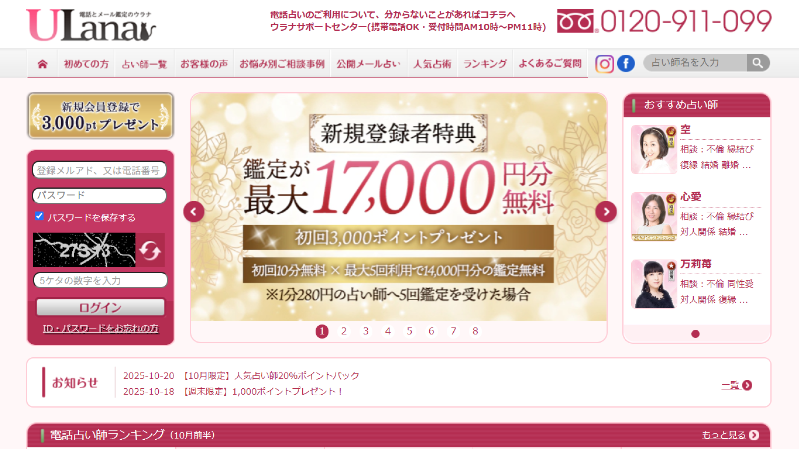 上場企業が運営する、安心の電話占い「ウラナ」。初回鑑定10分&通話料も無料!厳しい審査をクリアした実力派の占い師が、24時間いつでもあなたの悩みに寄り添います。