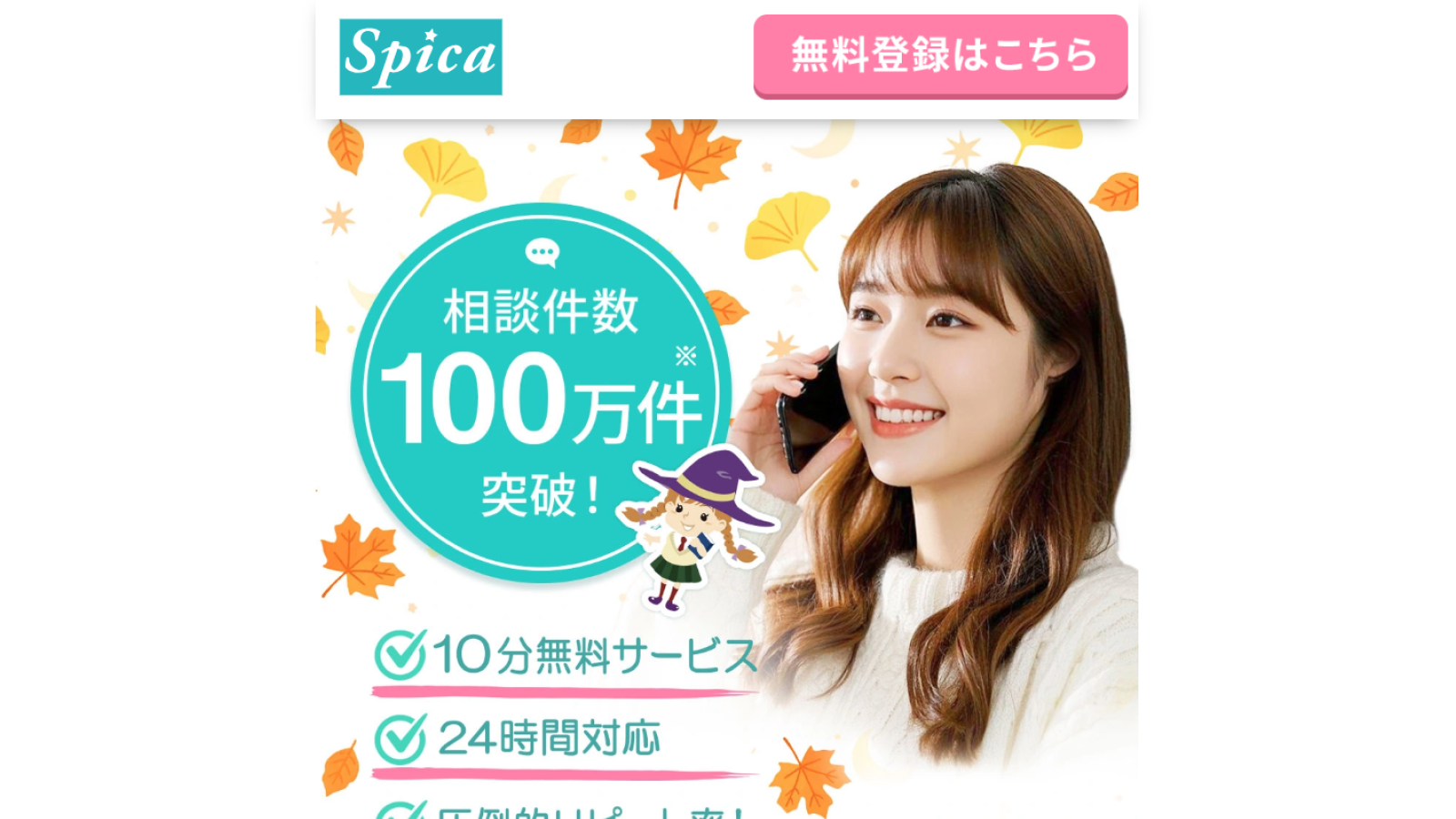 口コミで人気の電話占いスピカ。初回は最大10分(2,500円分)無料で鑑定を試せます。厳しい審査をクリアした実力派占い師が、あなたの悩みに親身に寄り添い、24時間いつでも的確なアドバイスを授けます。