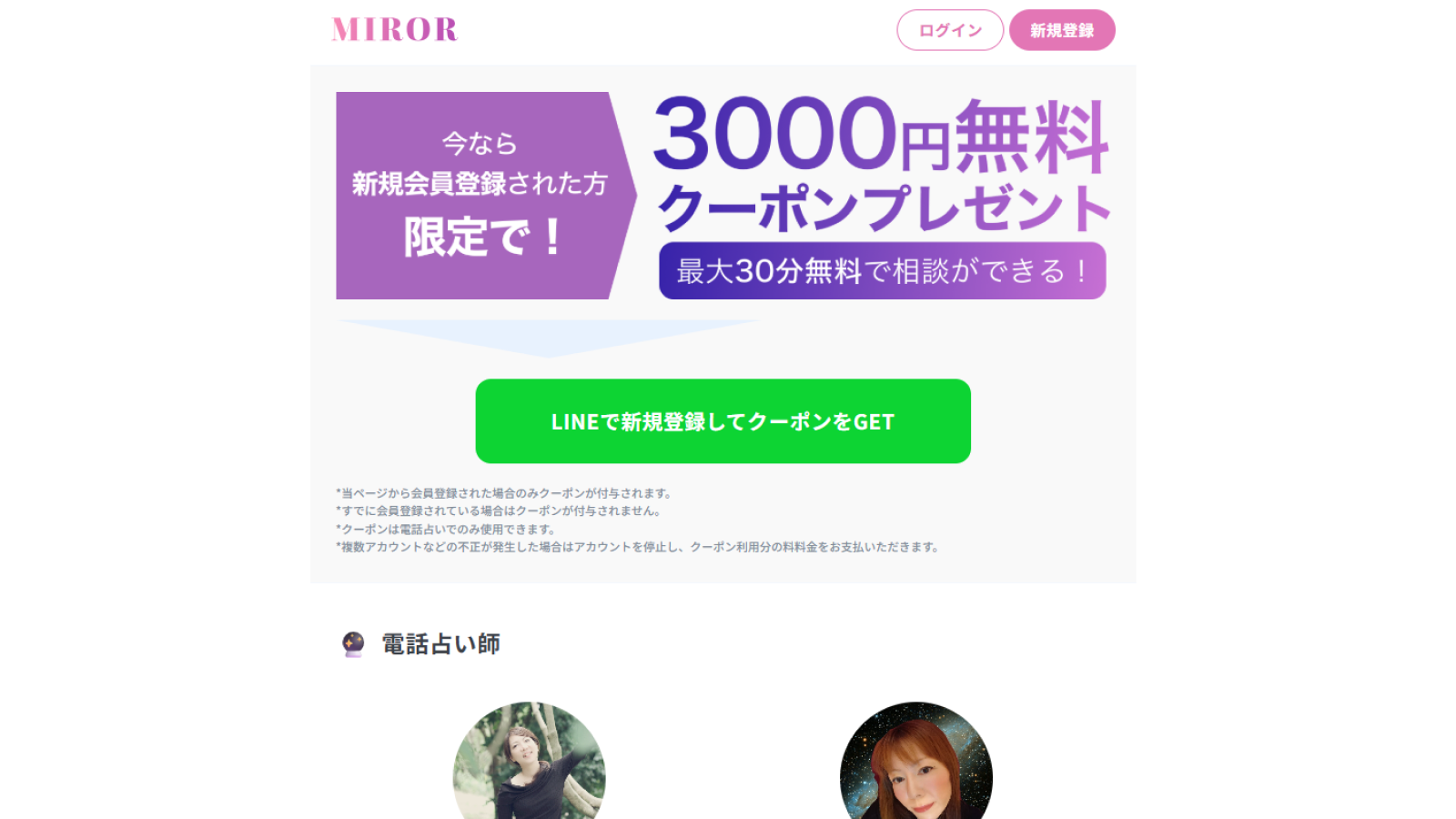 日本最大級のオンライン占いmiror。初回は3,000円分無料で、チャットや電話でいつでも気軽に実力派の占い師に相談できます。