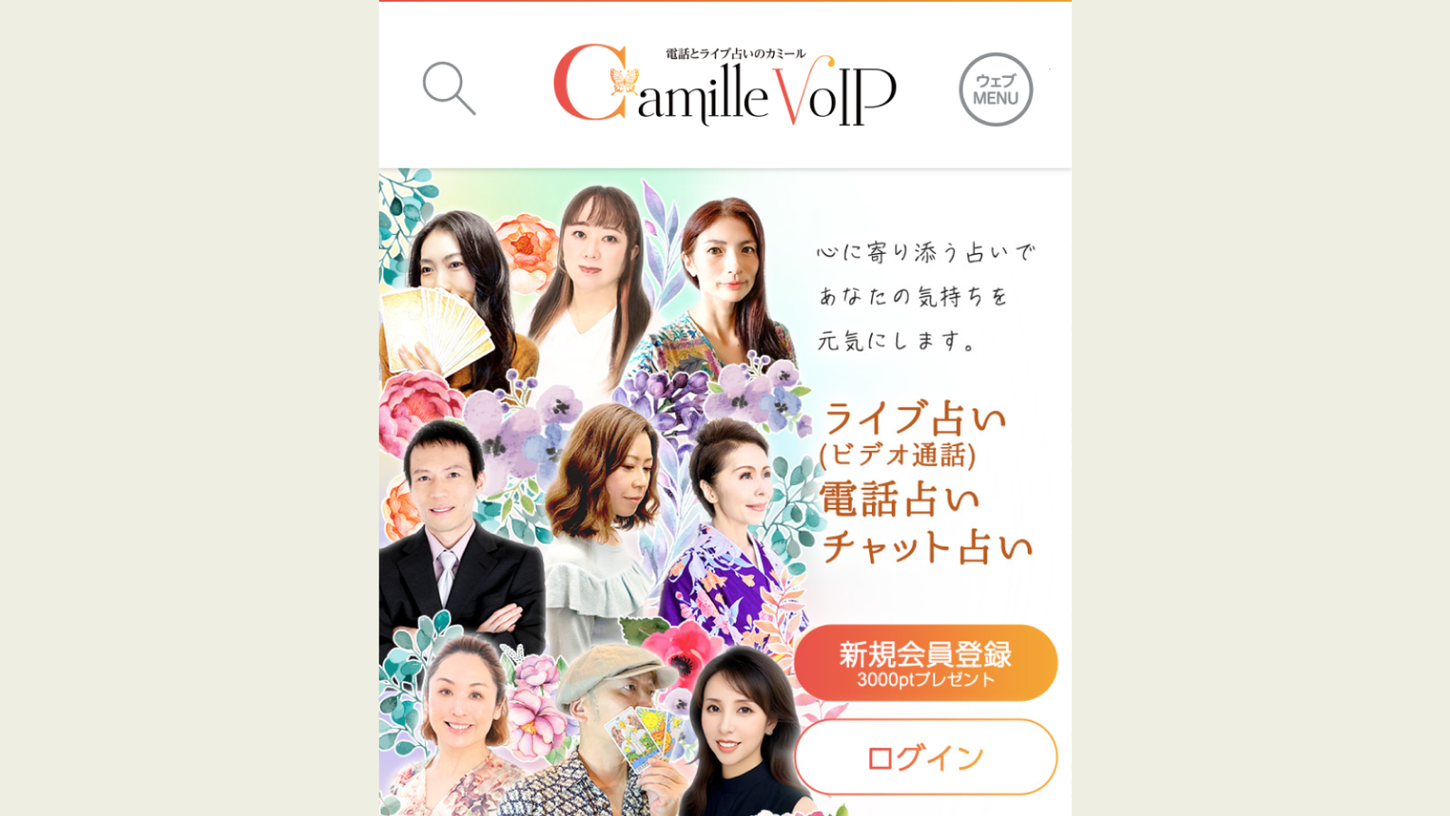 恋愛相談に強いと評判の電話占いカミール。採用率5%の厳しい審査を突破した本物の占い師が、24時間いつでもあなたの心に寄り添い、輝く未来へと導きます。